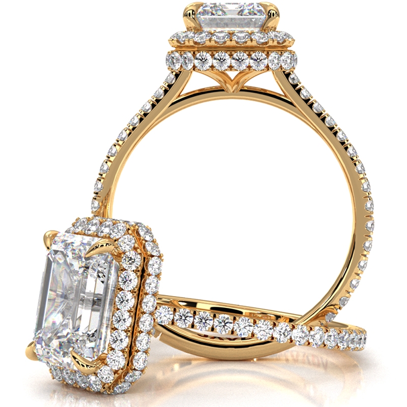 style Engagement Ring, center is Emerald shape Diamond Report by IGI, D Color & VS1 clarity, Made in 14k Yellow Gold (1.53 ct. tw.)