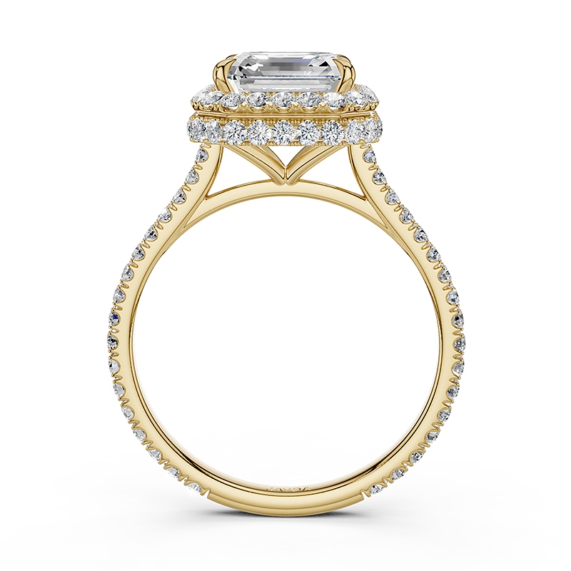 Double Halo Semi Mount Lab Grown Diamond Engagement Ring 18k Yellow Gold 0.53Ct.