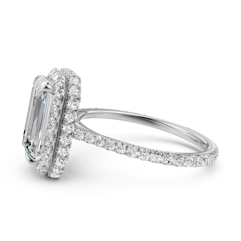 style Engagement Ring, center is Emerald shape Diamond Report by IGI, D Color & VS1 clarity, Made in Platinum 950 (1.53 ct. tw.)
