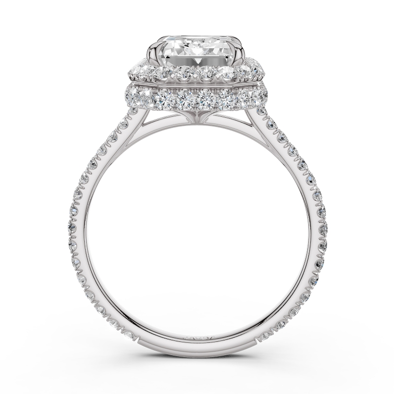 Double Halo Semi Mount Lab Grown Diamond Engagement Ring Platinum 950 0.53Ct.