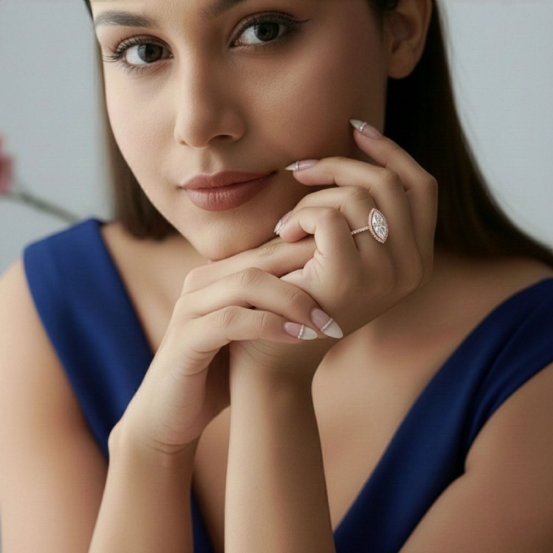 style Engagement Ring, center is Marquise shape Diamond Report by IGI, F Color & VS1 clarity, Made in 14k Rose Gold (5.53 ct. tw.)