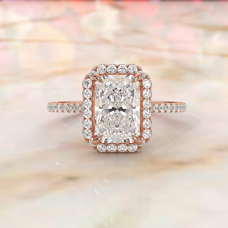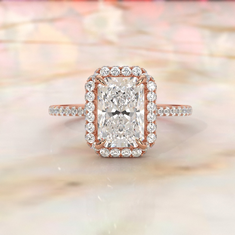 style Engagement Ring, center is Radiant shape Diamond Report by IGI, D Color & VS1 clarity, Made in 14k Rose Gold (1.53 ct. tw.)