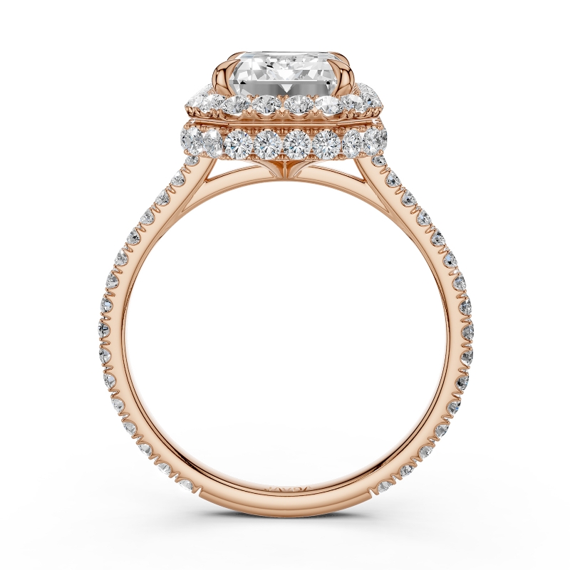 Double Halo Semi Mount Lab Grown Diamond Engagement Ring 14k Rose Gold 0.53Ct.