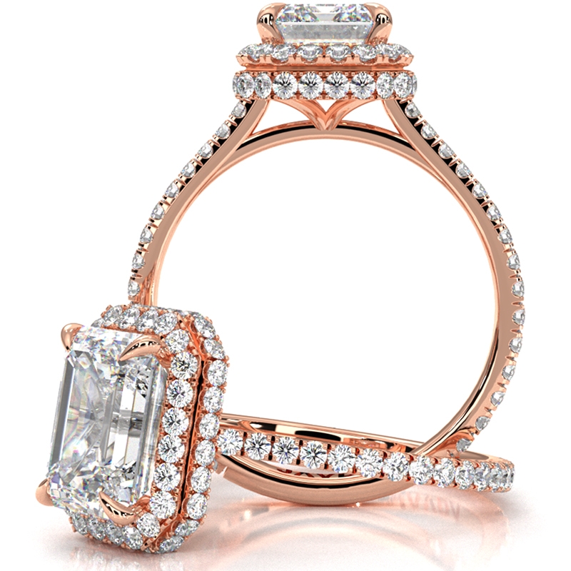 style Engagement Ring, center is Emerald shape Diamond Report by IGI, D Color & VS1 clarity, Made in 14k Rose Gold (1.53 ct. tw.)