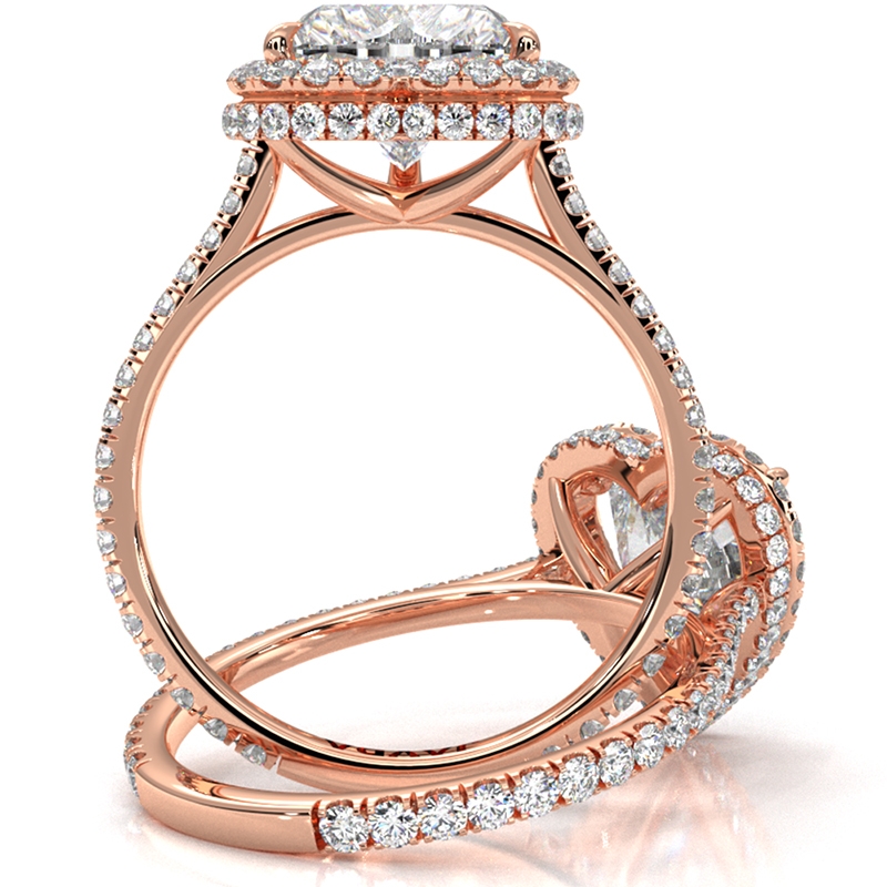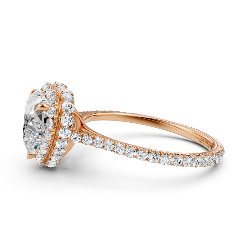 Double Halo Semi Mount Lab Grown Diamond Engagement Ring 14k Rose Gold 0.53Ct.