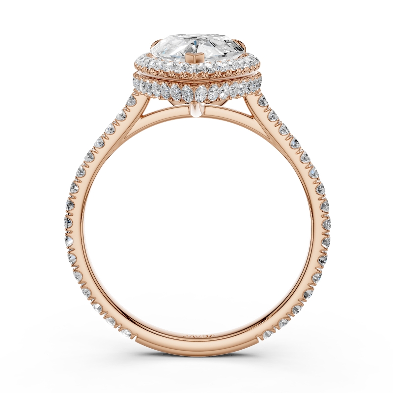 Double Halo Semi Mount Lab Grown Diamond Engagement Ring 14k Rose Gold 0.53Ct.