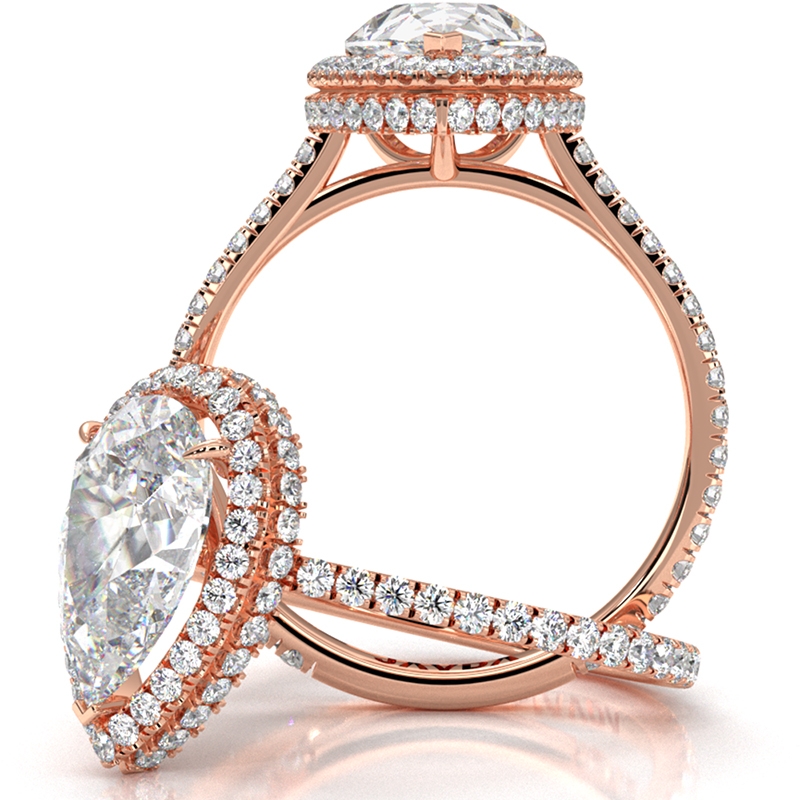 style Engagement Ring, center is Pear shape Diamond Report by IGI, D Color & VS1 clarity, Made in 14k Rose Gold (1.53 ct. tw.)