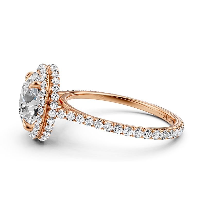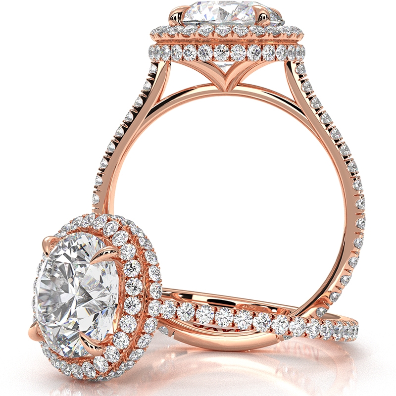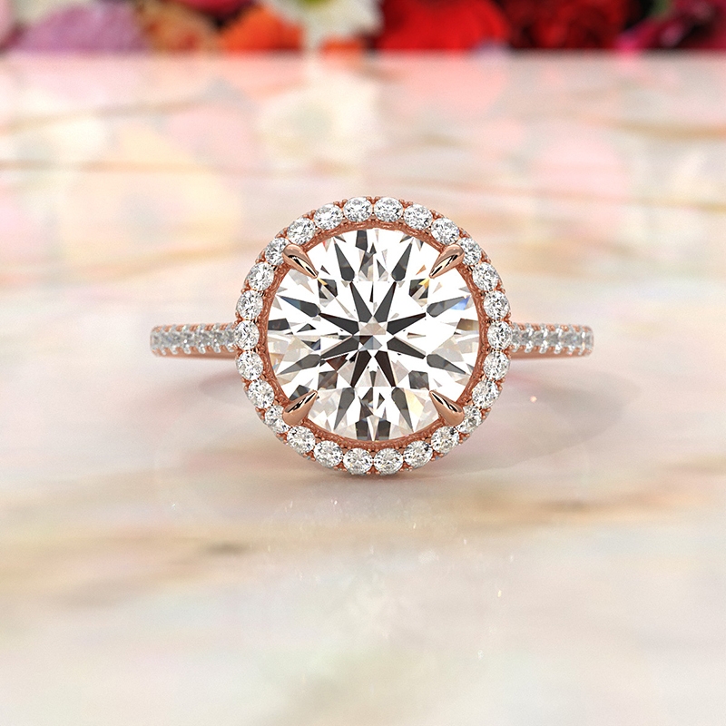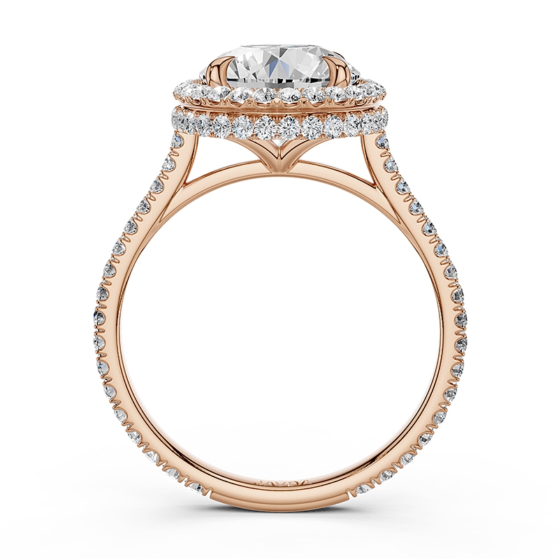 Double Halo Semi Mount Lab Grown Diamond Engagement Ring 14k Rose Gold 0.53Ct.