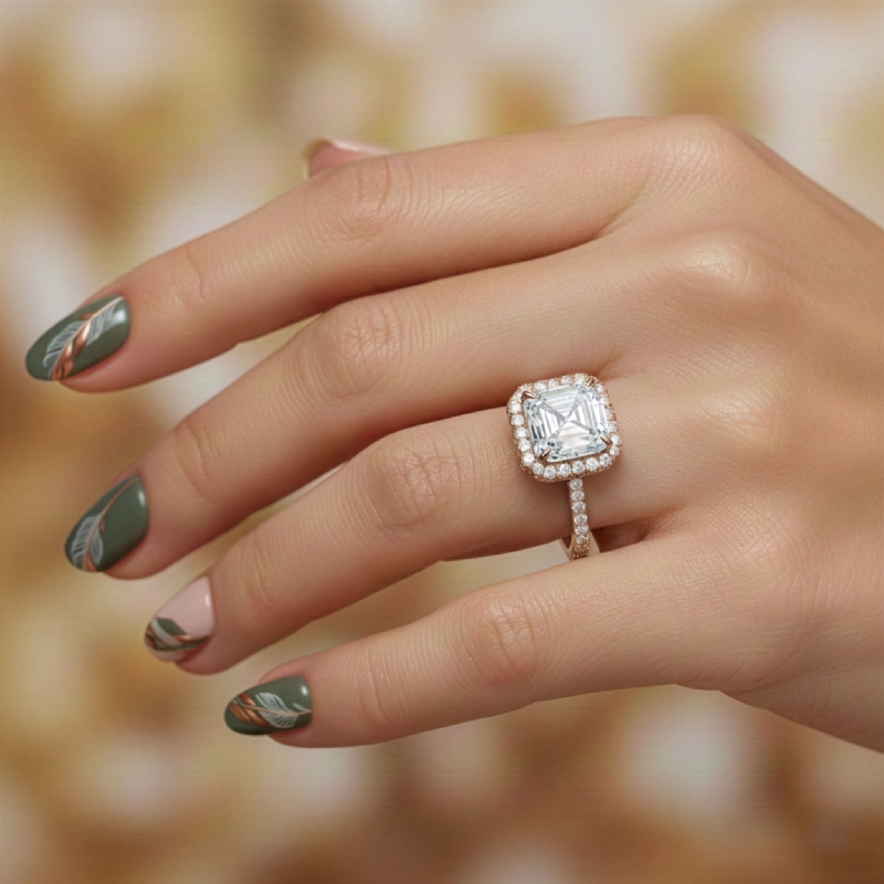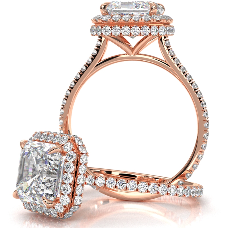 style Engagement Ring, center is Asscher shape Diamond Report by IGI, D Color & VS1 clarity, Made in 18k Rose Gold (1.61 ct. tw.)