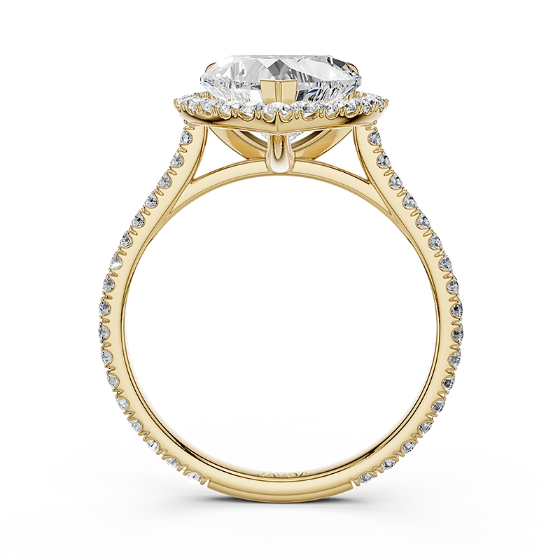 French U Pave Halo Semi Mount Diamond Engagement Ring 14k Yellow Gold 0.54Ct.