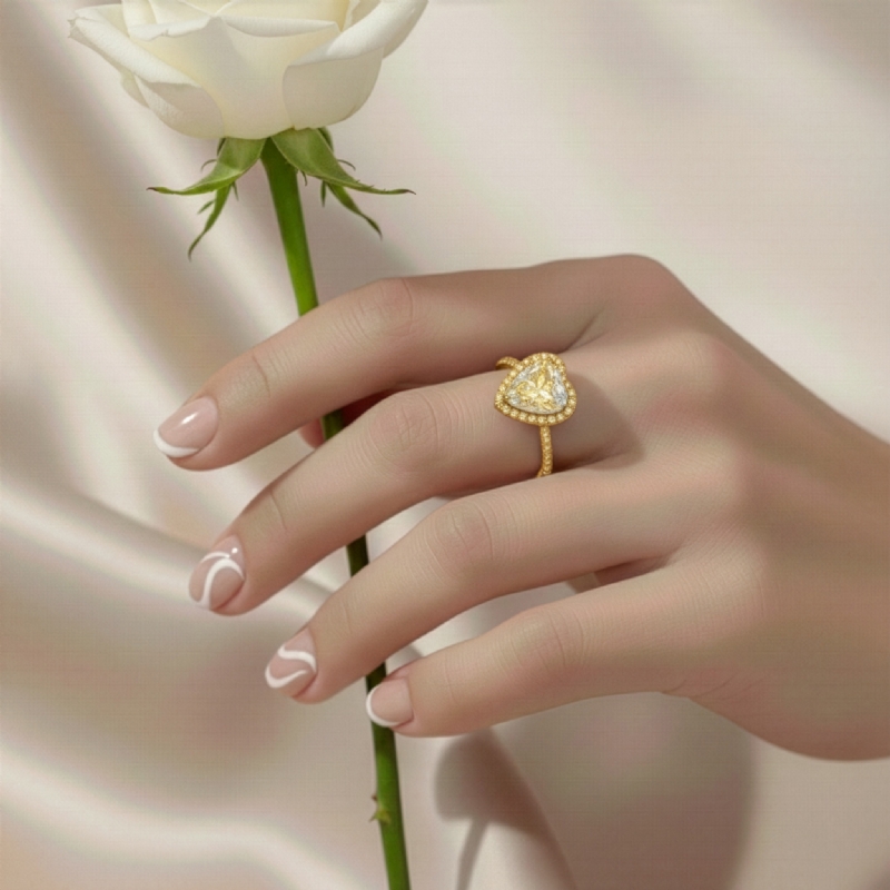 style Engagement Ring, center is Heart shape Diamond Report by IGI, D Color & VS1 clarity, Made in 14k Yellow Gold (1.57 ct. tw.)