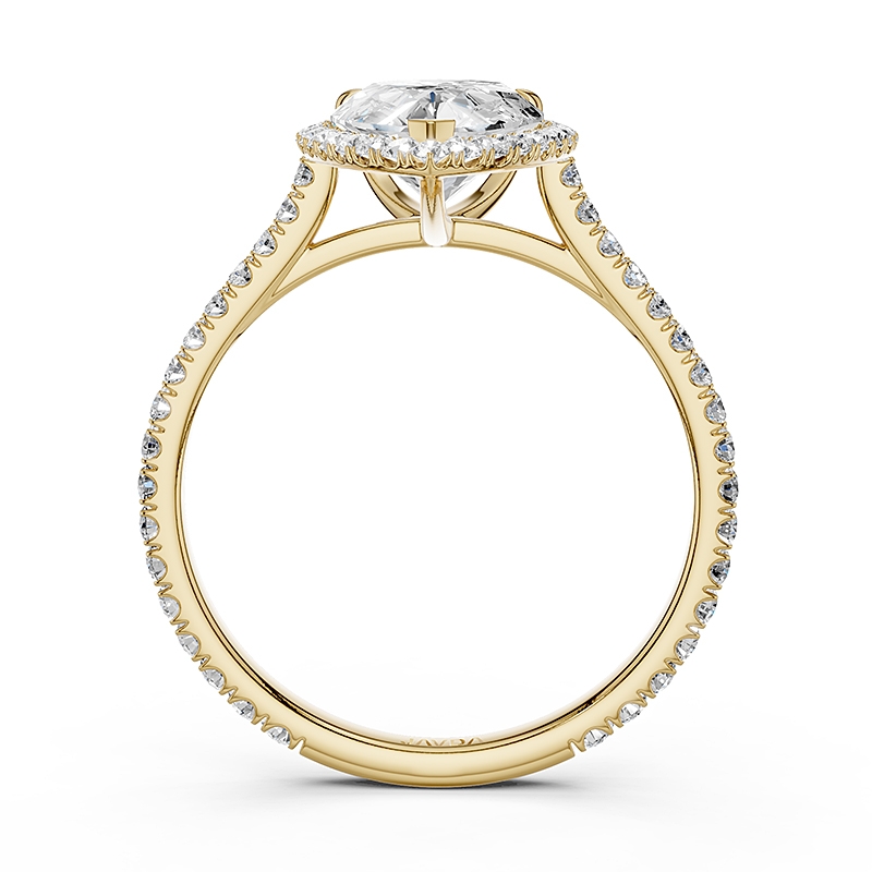 French U Pave Halo Semi Mount Diamond Engagement Ring 14k Yellow Gold 0.54Ct - javda.com