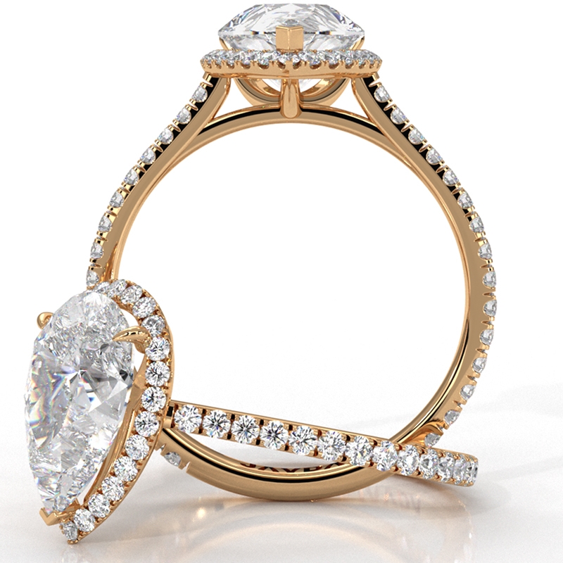 style Engagement Ring, center is Pear shape Diamond Report by IGI, E Color & VS1 clarity, Made in 14k Yellow Gold (1.58 ct. tw.)