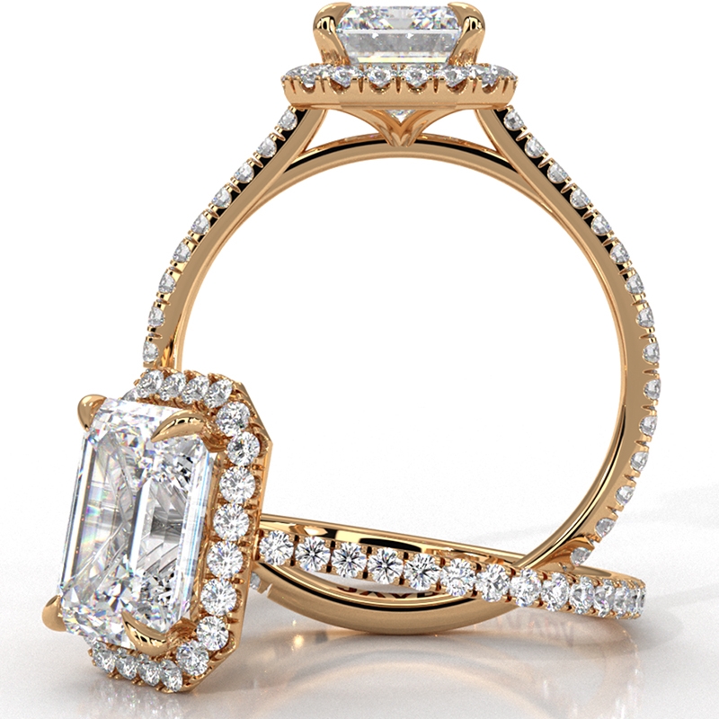 style Engagement Ring, center is Emerald shape Diamond Report by IGI, D Color & VS1 clarity, Made in 14k Yellow Gold (1.58 ct. tw.)