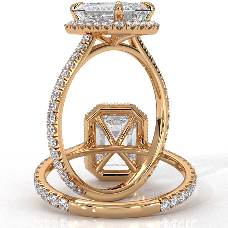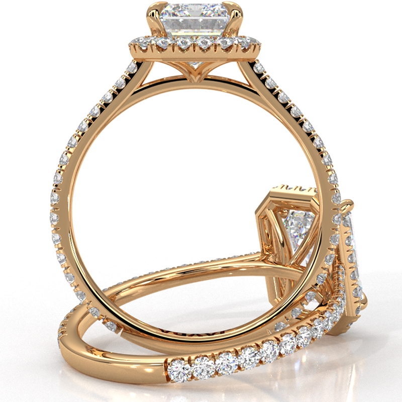 French U Pave Halo Semi Mount Diamond Engagement Ring 14k Yellow Gold 0.54Ct - javda.com