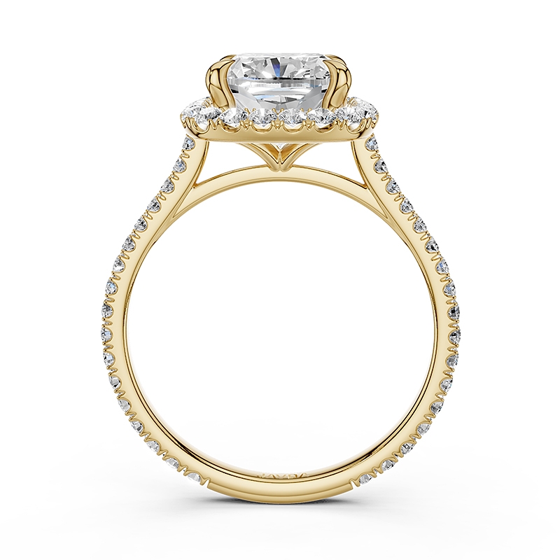 French U Pave Halo Semi Mount Diamond Engagement Ring 14k Yellow Gold 0.54Ct.
