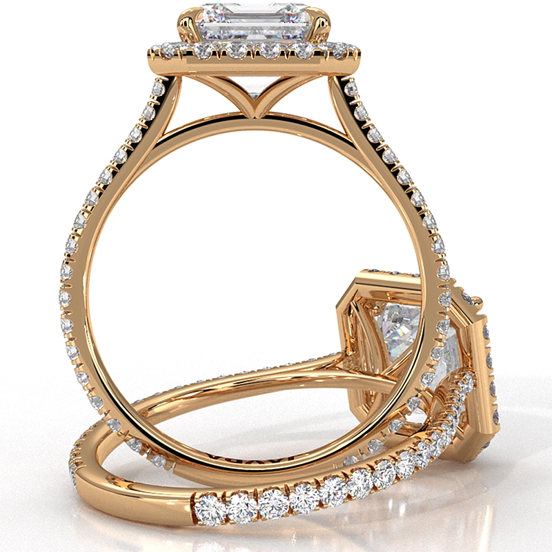 French U Pave Halo Semi Mount Diamond Engagement Ring 18k Yellow Gold 0.54Ct.