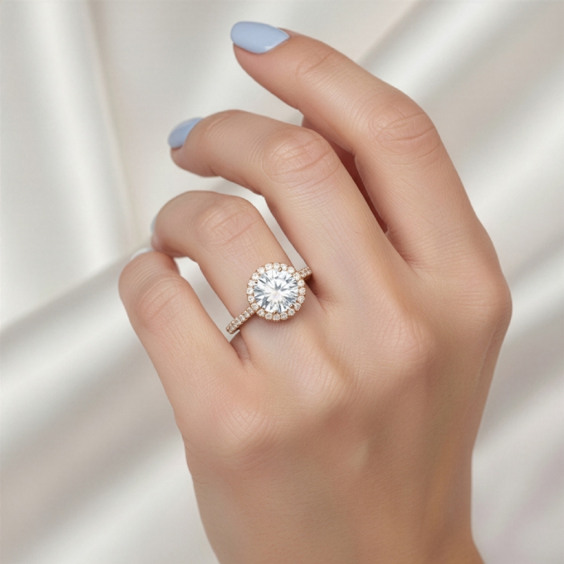 style Engagement Ring, center is Round shape Diamond Report by IGI, D Color & VS1 clarity, Made in 14k Rose Gold (5.54 ct. tw.)