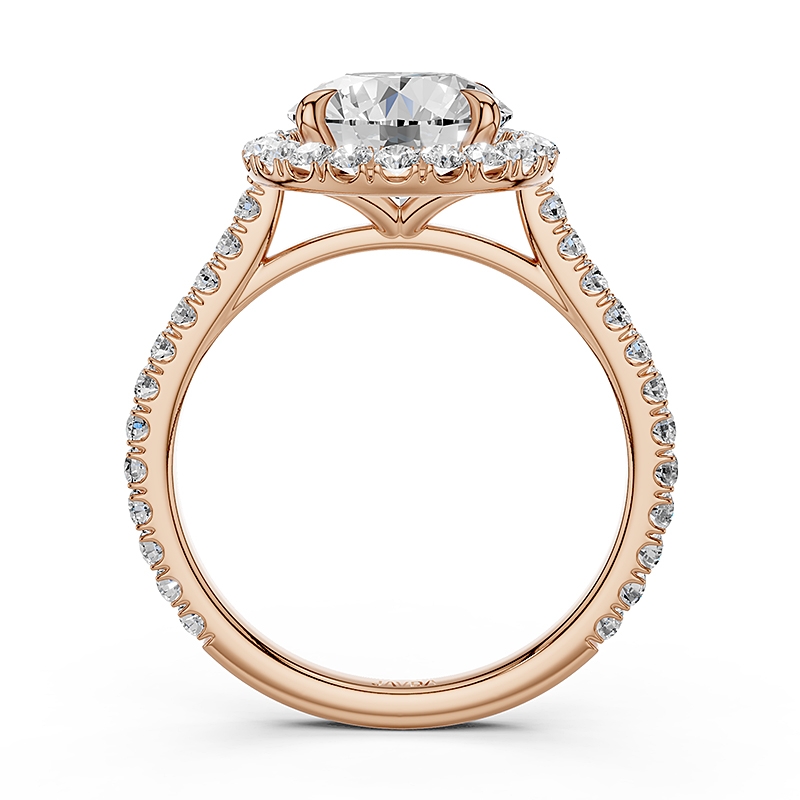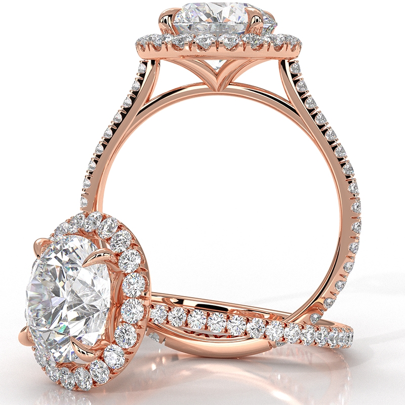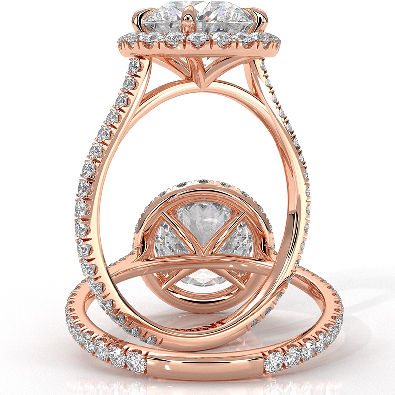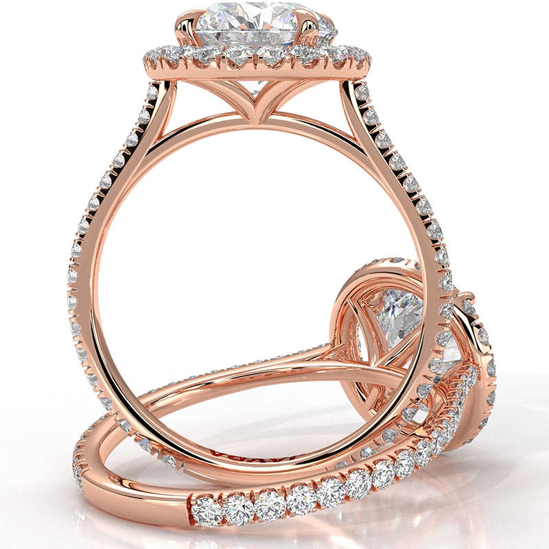 French U Pave Halo Semi Mount Diamond Engagement Ring 14k Rose Gold 0.54Ct.