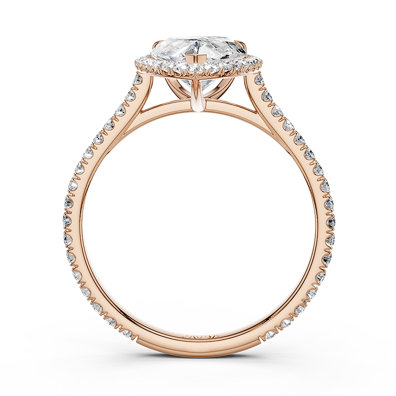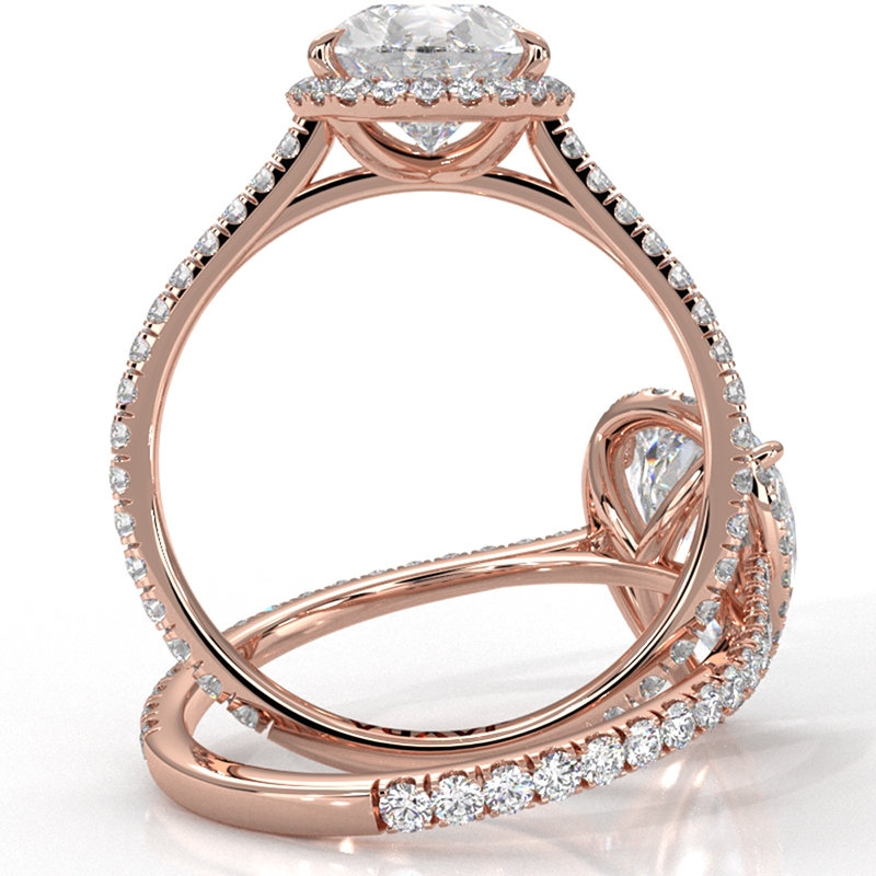 French U Pave Halo Semi Mount Diamond Engagement Ring 14k Rose Gold 0.54Ct.
