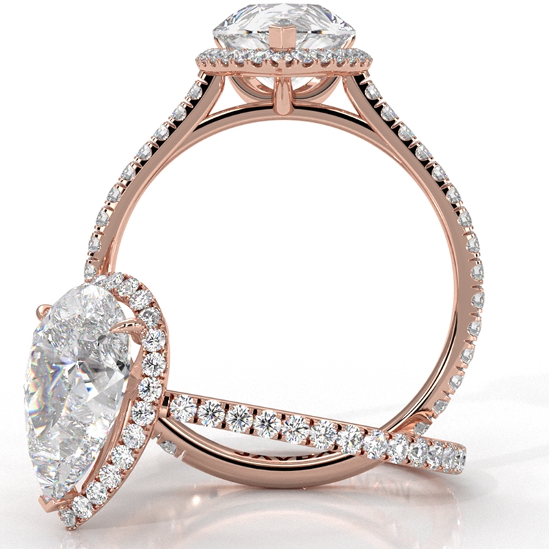 style Engagement Ring, center is Pear shape Diamond Report by IGI, E Color & VS1 clarity, Made in 14k Rose Gold (1.58 ct. tw.)