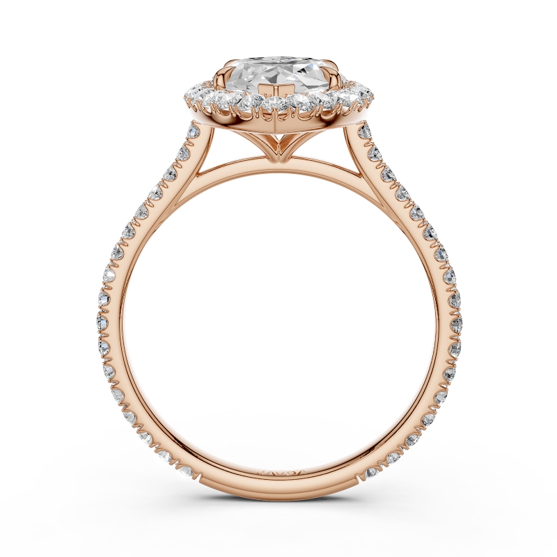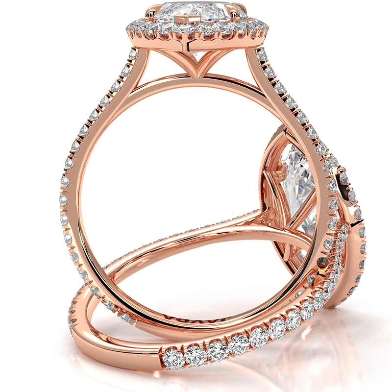 French U Pave Halo Semi Mount Diamond Engagement Ring 14k Rose Gold 0.54Ct.