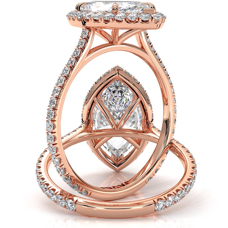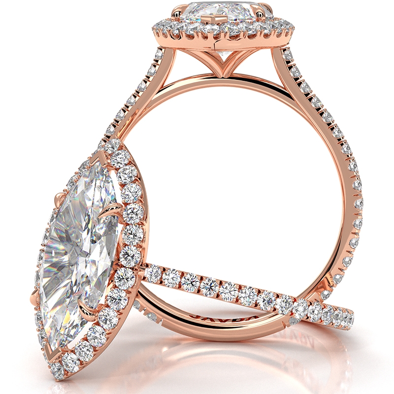 style Engagement Ring, center is Marquise shape Diamond Report by IGI, E Color & VS1 clarity, Made in 14k Rose Gold (1.96 ct. tw.)