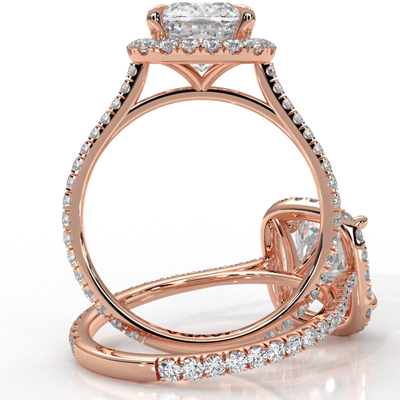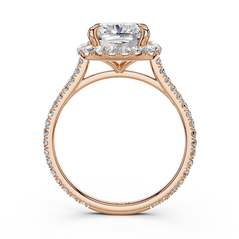 French U Pave Halo Semi Mount Diamond Engagement Ring 14k Rose Gold 0.54Ct.