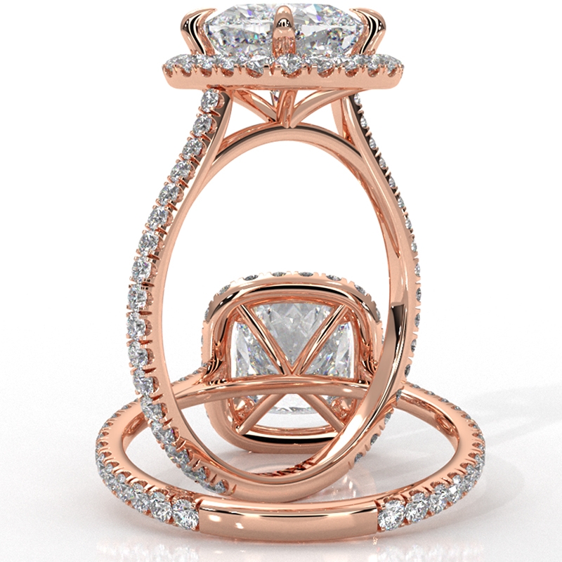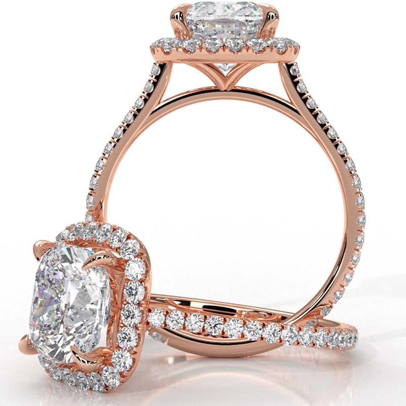 style Engagement Ring, center is Cushion shape Diamond Report by IGI, D Color & VS1 clarity, Made in 14k Rose Gold (1.64 ct. tw.)