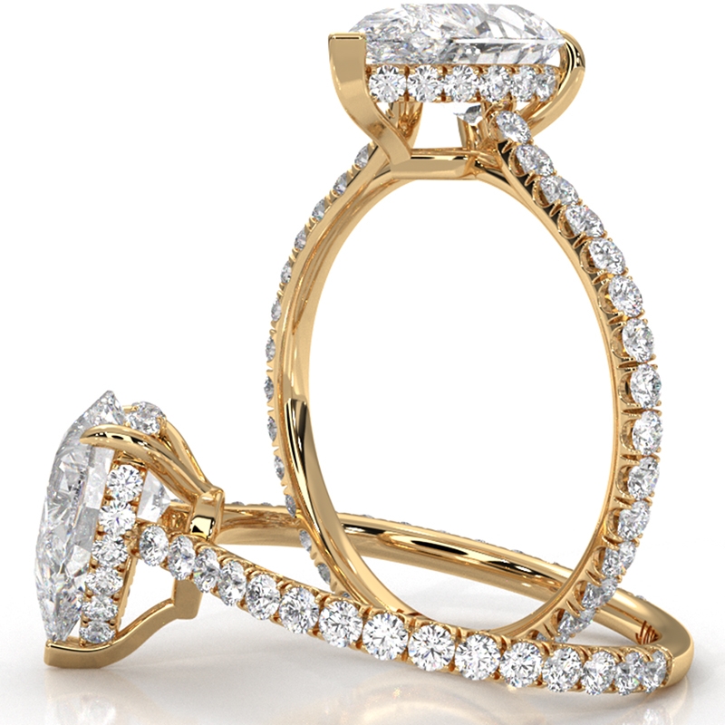 Hidden Halo U Pave Round Semi Mount Diamond Engagement Ring 14k Yellow Gold 0.47Ct - javda.com