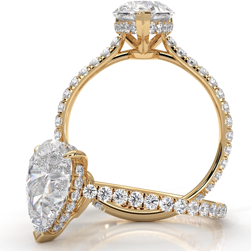 style Engagement Ring, center is Pear shape Diamond Report by IGI, E Color & VS1 clarity, Made in 14k Yellow Gold (1.69 ct. tw.)