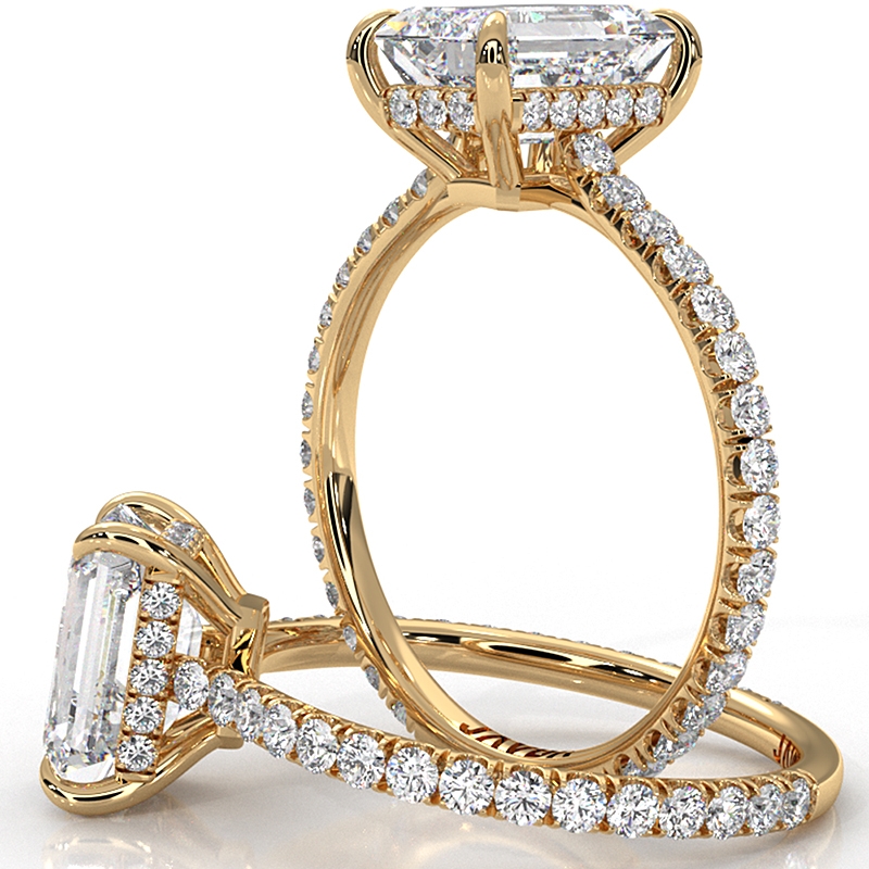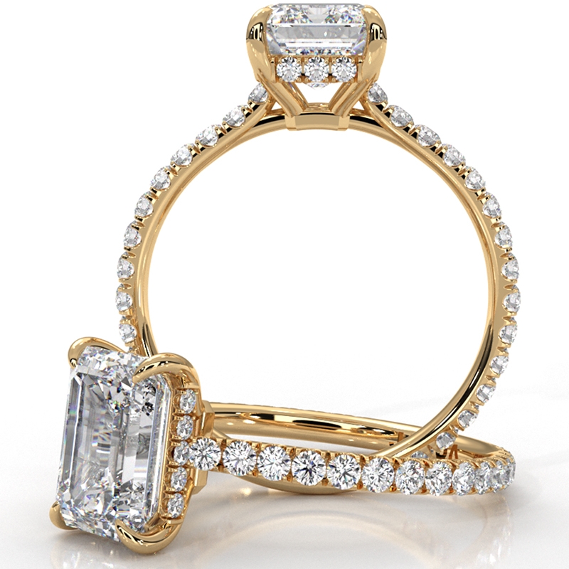style Engagement Ring, center is Emerald shape Diamond Report by IGI, D Color & VS1 clarity, Made in 14k Yellow Gold (1.47 ct. tw.)