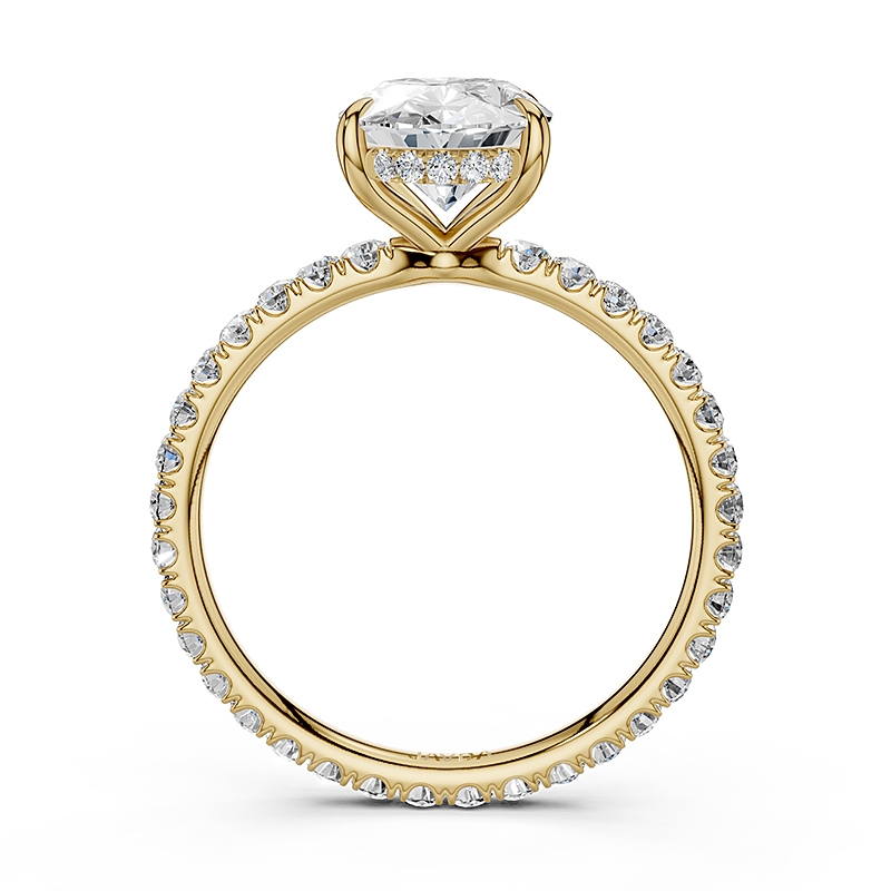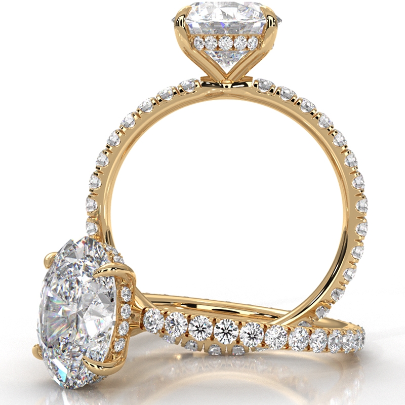 Hidden Halo French U Cut Pave Semi Mount Diamond Engagement Ring 14k Yellow Gold 0.6Ct - javda.com