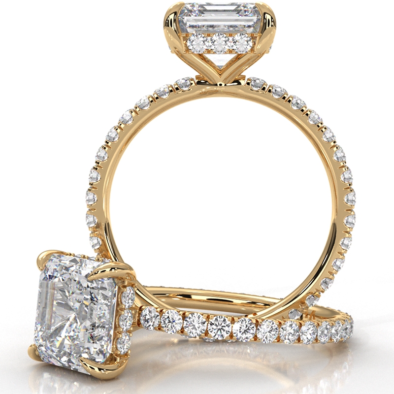Hidden Halo French U Cut Pave Semi Mount Diamond Engagement Ring 14k Yellow Gold 0.6Ct.