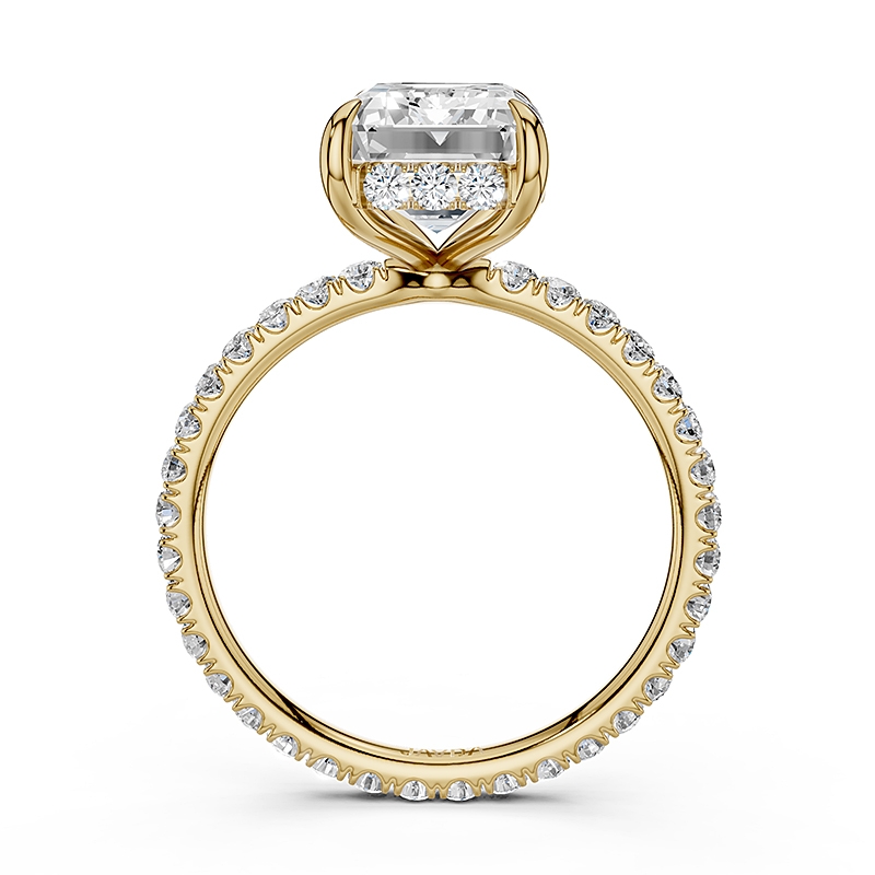 Hidden Halo French U Cut Pave Semi Mount Diamond Engagement Ring 14k Yellow Gold 0.6Ct.