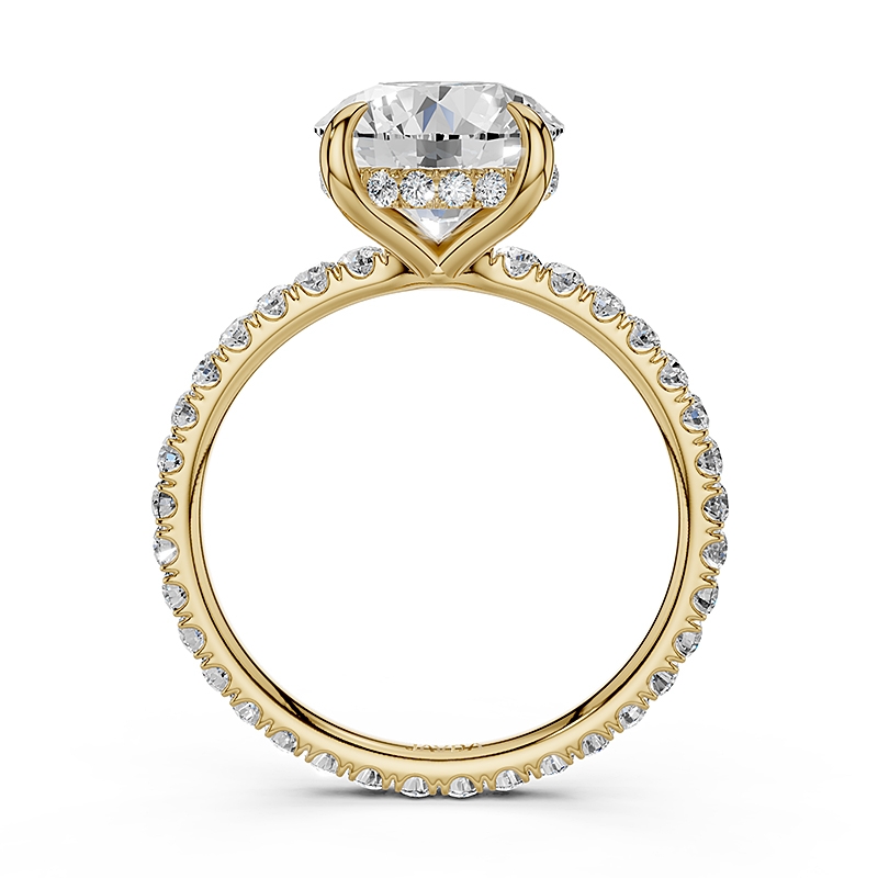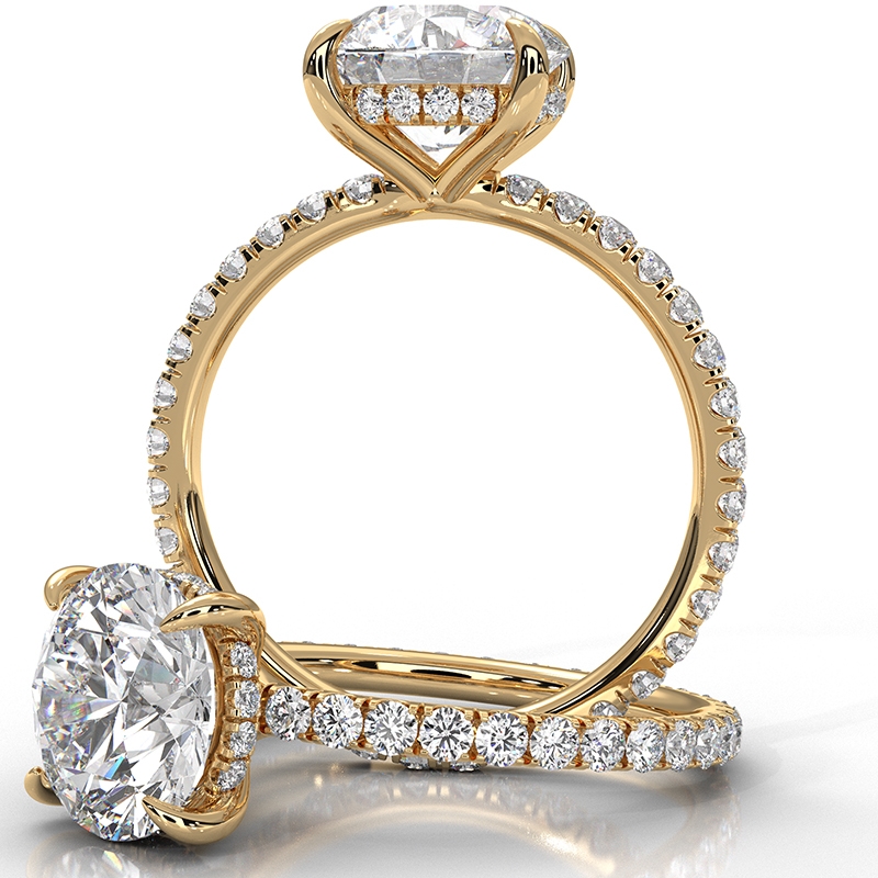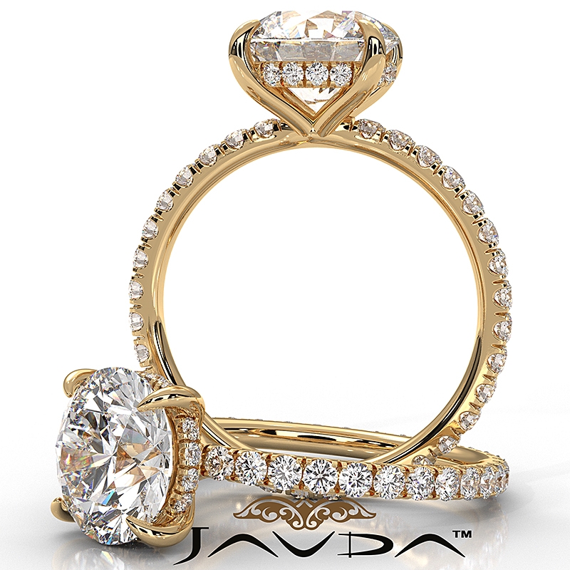Hidden Halo French U Cut Pave Semi Mount Diamond Engagement Ring 18k Yellow Gold 0.6Ct.