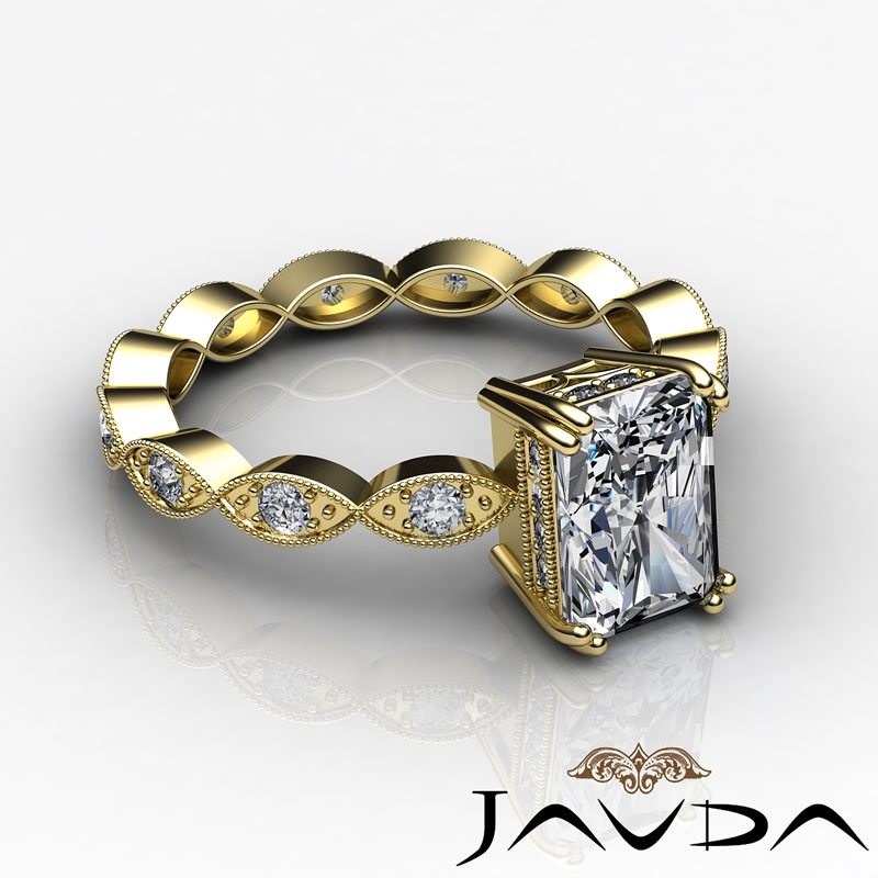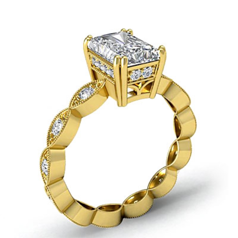 Milgrain Edge Eternity Prong style Engagement Ring, center is Radiant shape Diamond Report by GIA, D Color & VVS2 clarity, Made in 18k Yellow Gold (1 ct. tw.)
