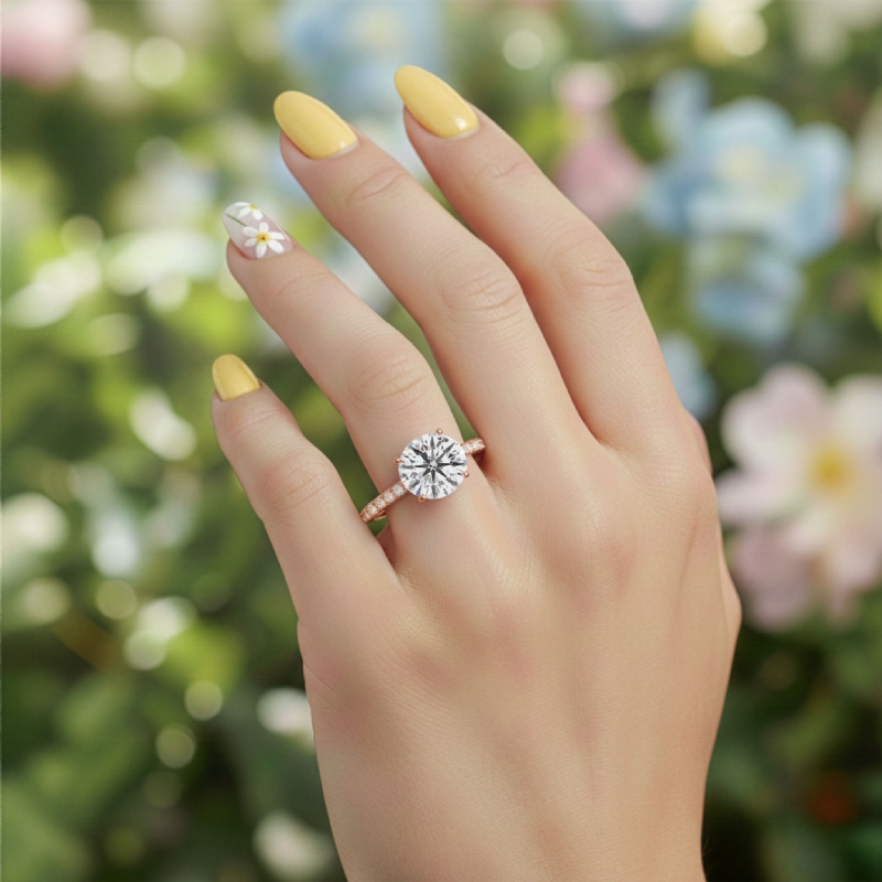 style Engagement Ring, center is Round shape Diamond Report by IGI, D Color & VS1 clarity, Made in 18k Rose Gold (1.64 ct. tw.)