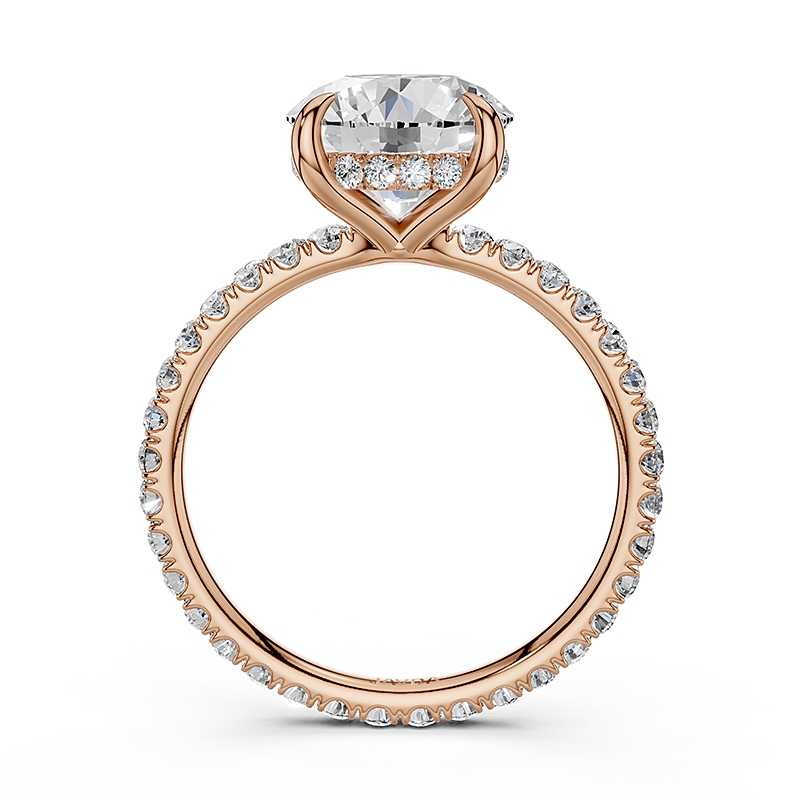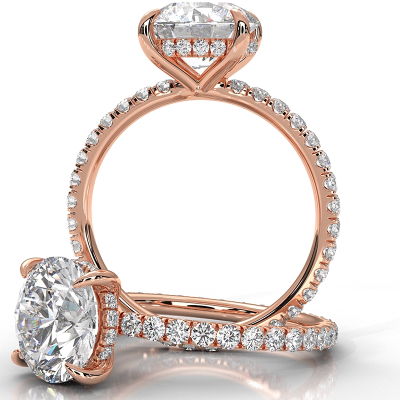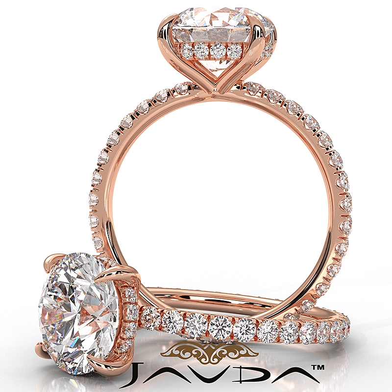 Hidden Halo French U Cut Pave Semi Mount Diamond Engagement Ring 18k Rose Gold 0.6Ct - javda.com