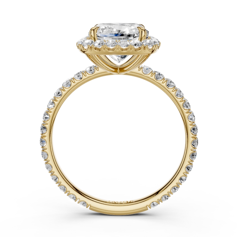 French Pave Round Halo Semi Mount Diamond Engagement Ring 14k Yellow Gold 0.59Ct - javda.com