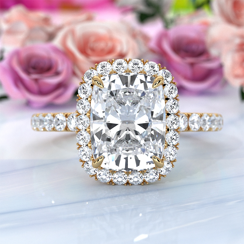 style Engagement Ring, center is Cushion shape Diamond Report by IGI, E Color & VS1 clarity, Made in 14k Yellow Gold (1.96 ct. tw.)