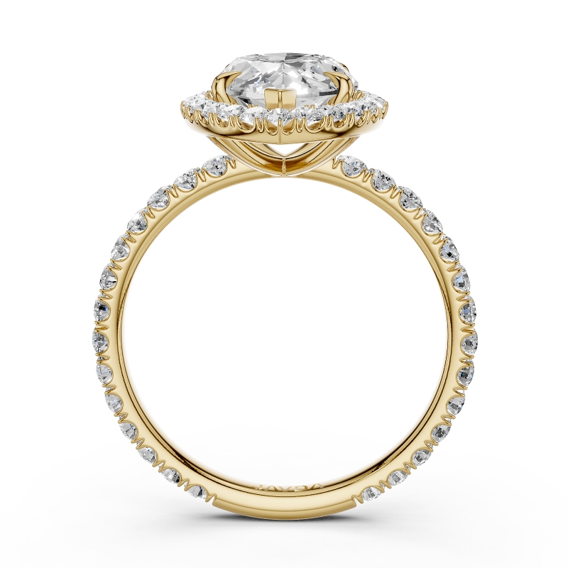 French Pave Round Halo Semi Mount Diamond Engagement Ring 14k Yellow Gold 0.59Ct.