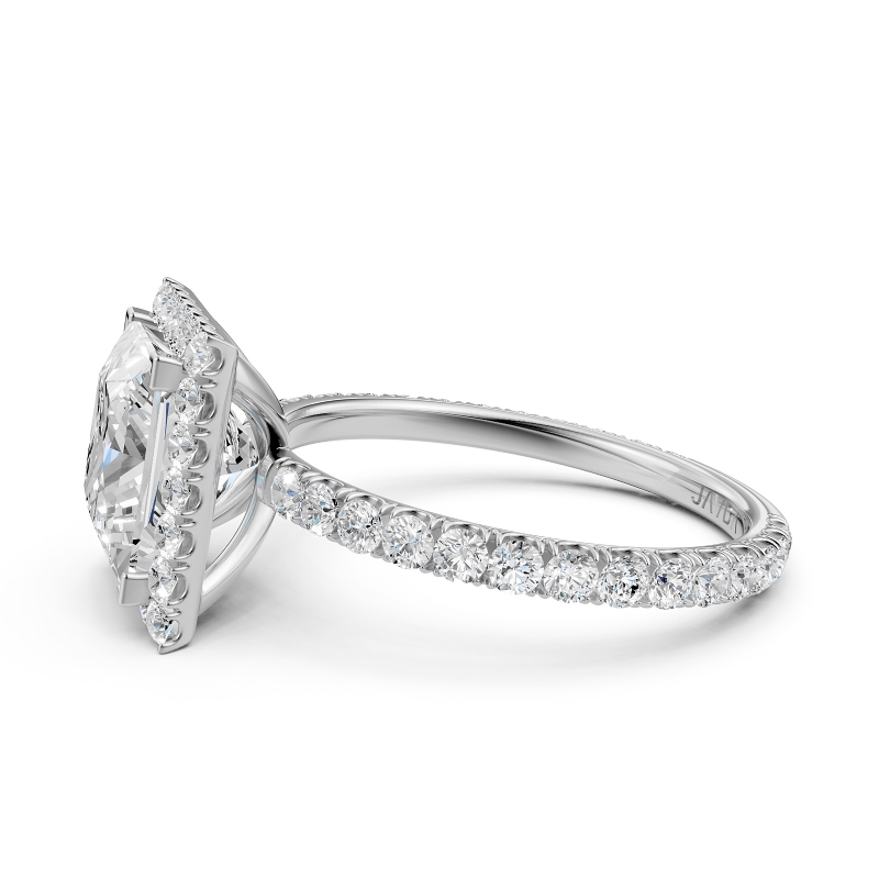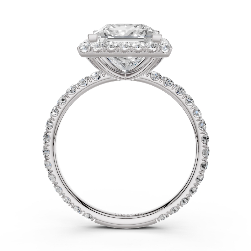 French Pave Round Halo Semi Mount Diamond Engagement Ring Platinum 950 0.59Ct - javda.com