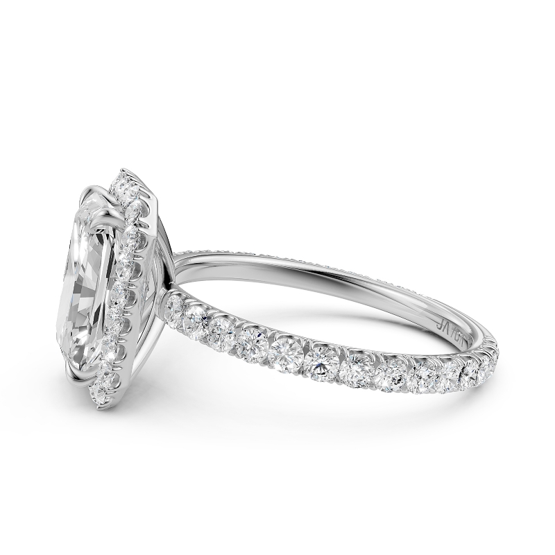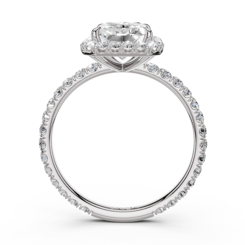French Pave Round Halo Semi Mount Diamond Engagement Ring Platinum 950 0.59Ct - javda.com