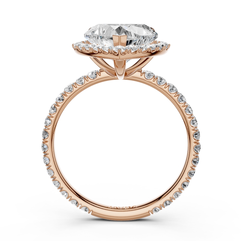 French Pave Round Halo Semi Mount Diamond Engagement Ring 14k Rose Gold 0.59Ct - javda.com