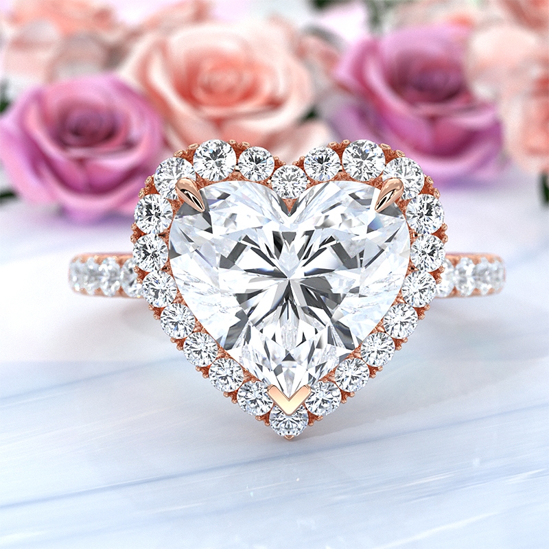 style Engagement Ring, center is Heart shape Diamond Report by IGI, D Color & VS1 clarity, Made in 14k Rose Gold (1.62 ct. tw.)