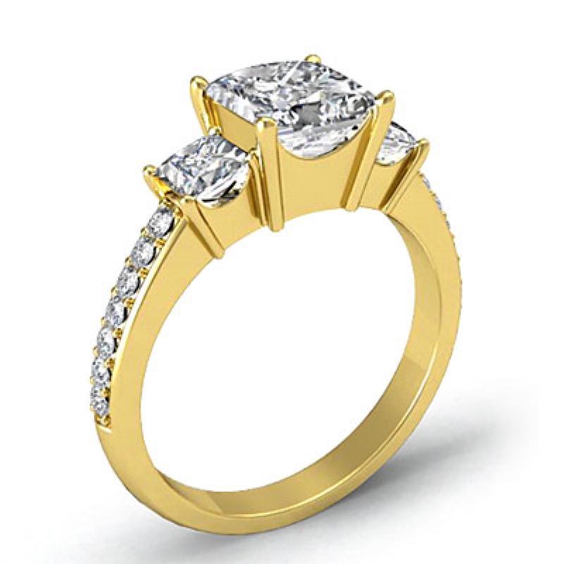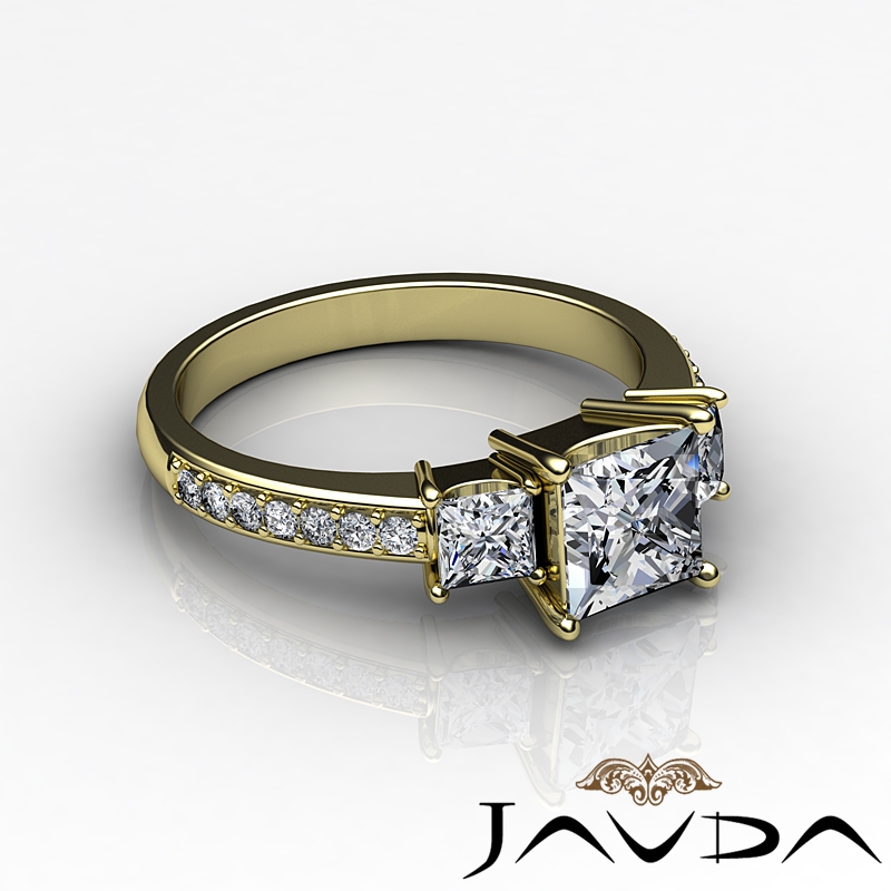 3 Stone Sidestone Prong Set style Engagement Ring, center is Princess shape Diamond Report by GIA, J Color & VVS2 clarity, Made in 18k Yellow Gold (1.82 ct. tw.)