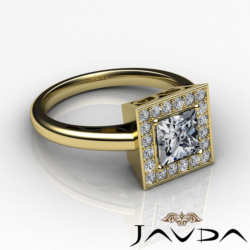 0.36Ct Halo Setting Diamond Engagement Princess Semi Mount Ring 18k Yellow Gold.