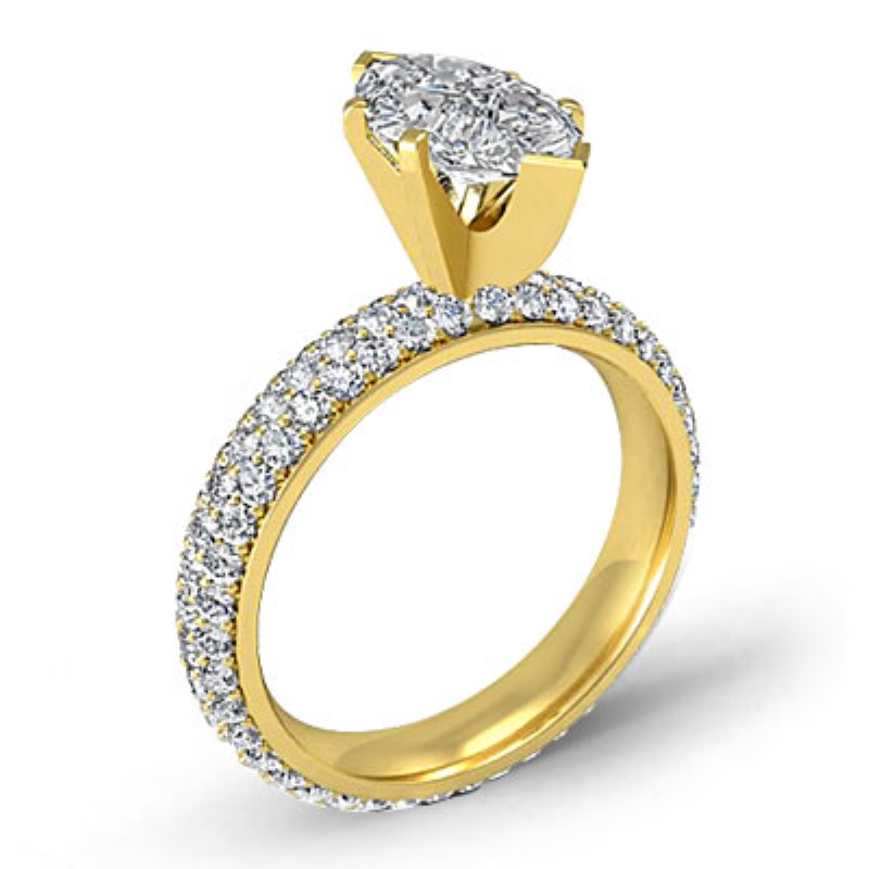 3 Row Micro Pave Set Shank style Engagement Ring, center is Marquise shape Diamond Report by IGI, E Color & VS1 clarity, Made in 18k Yellow Gold (3.88 ct. tw.)