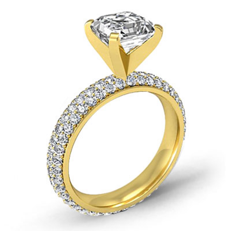3 Row Micro Pave Set Shank style Engagement Ring, center is Asscher shape Diamond Report by IGI, D Color & VS1 clarity, Made in 18k Yellow Gold (2.16 ct. tw.)
